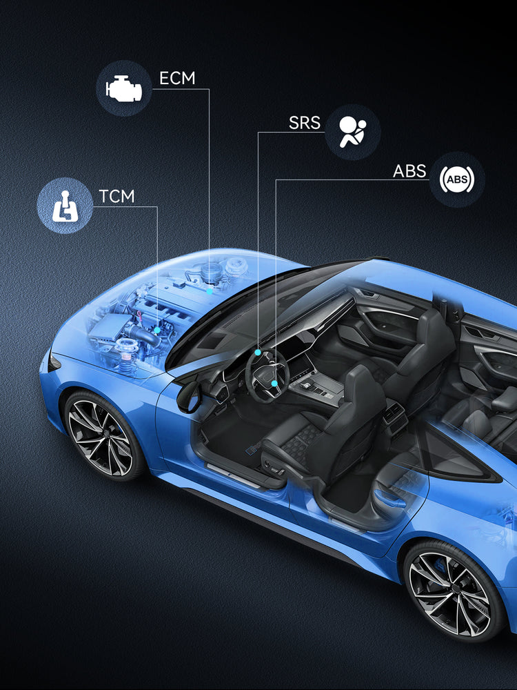 Beherrschen Sie die vier entscheidenden Systeme Ihres Fahrzeugs (ECM, TCM, ABS, SRS), unterstützt durch eine Diagnosedatenbank mit über 125 Marken für bombensichere Zuverlässigkeit.