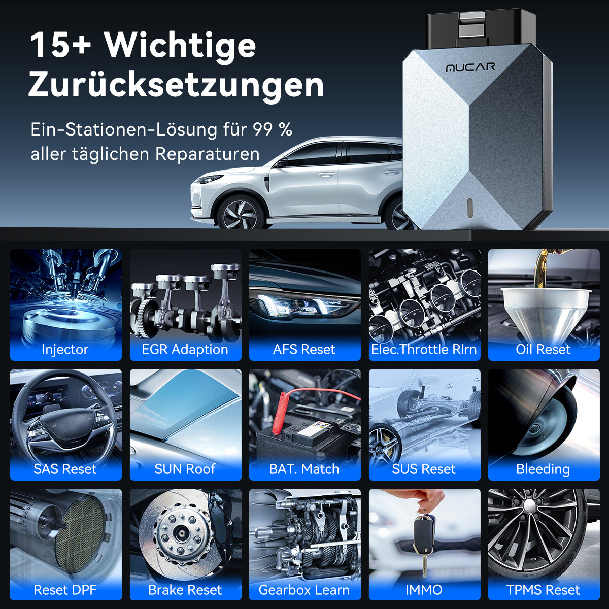 • 15+ wichtige Rücksetzfunktionen (z.B. Ölreset, SAS, BMS, TPMS, EPB), spart teure Werkstattbesuche.
