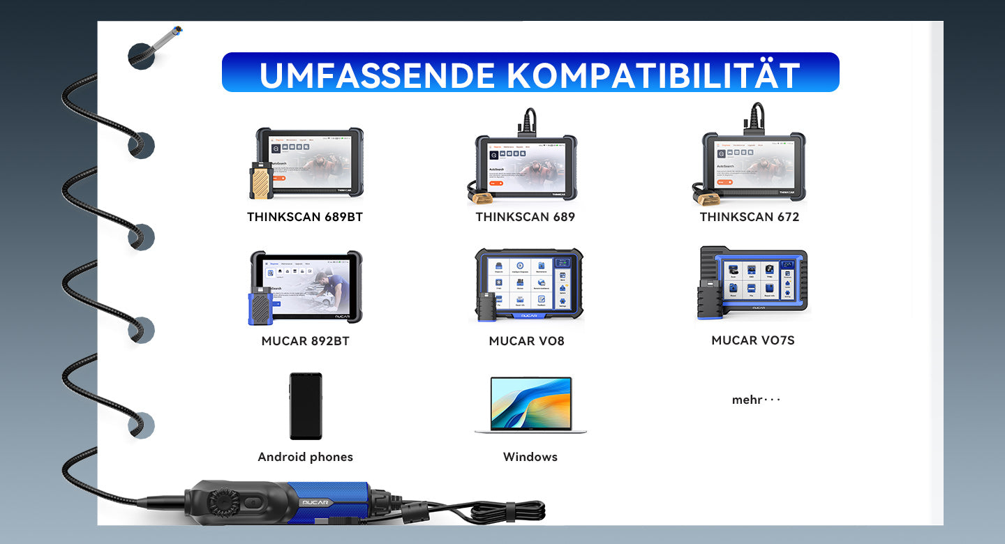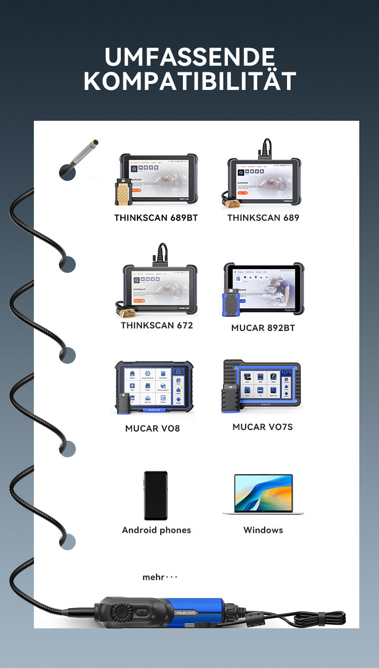 Unterstützte Geräte: THINKSCAN 689BT, MUCAR 892BT, MUCAR VO8, Android-Smartphones, Windows-Computer, etc.
