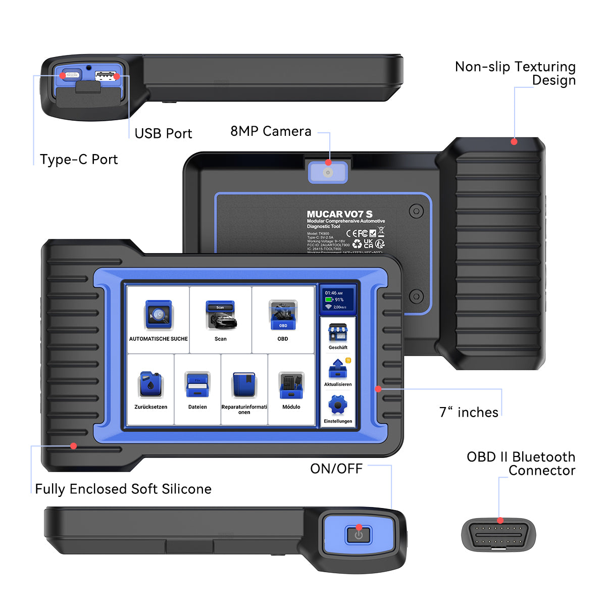 • 7-Zoll-Touchsbildschirm + 2G/32 g Speicher + 6000mAh Akku