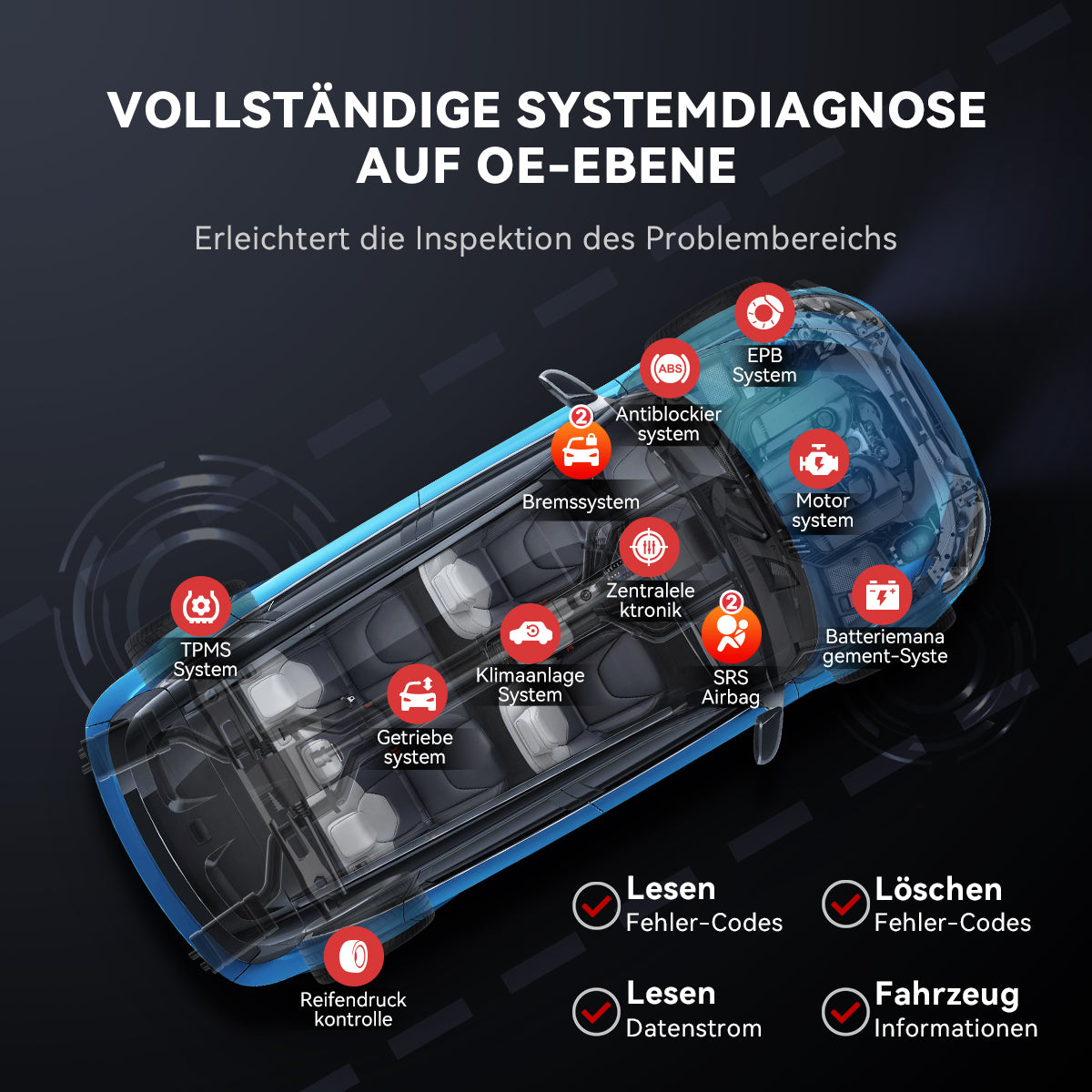 • Alle Systemdiagnosen mit Bluetooth Stecker