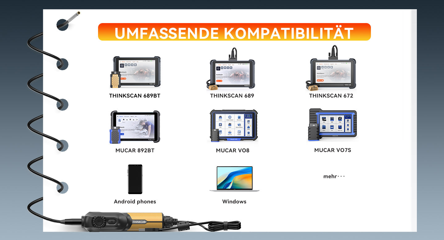 Unterstützte Geräte: THINKSCAN 689BT, MUCAR 892BT, MUCAR VO8, Android-Smartphones, Windows-Computer, etc.